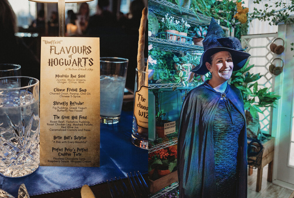 No themed dinner would be complete without a thoughtfully curated bar. Specialty drinks make their appearance throughout the evening, including a much-loved butterbeer and rotating creations featuring shimmer, colour-changing elements, and unexpected finishes.